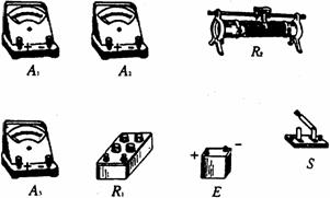 电池E,电动势约10V,内阻约1Ω;电流表A1,量程10A,内阻r1约为0.2Ω;电流表A2,量程300mA,内阻r2约为5Ω;电流表A3,量程250mA,内阻r3约为5Ω;电阻箱R1,最大阻值999.9Ω,阻值最小改变量为0.1Ω;滑线变阻器R2,最大阻值100Ω;开关S;导线若干。