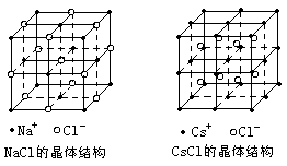 (3)1183k以下纯铁晶体的基本结构单元与CsCl相同, 1183k以上转变为与干冰相似(如图示)两种晶体中最邻近的 铁原子间距离相同。求转变温度时两者的密度比(取两位有 效数字)。 |