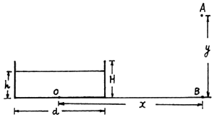 22.(14分)如图所示,水平地面上有一个圆槽,直径d=1.00m,高H=0.50m,底面圆心为O.一个人站在地面上B点,眼睛处于A点.BO间的距离x=2.10m,AB高y=1.70m.现在往槽内倒入折射率n=1.60的透明液体后,在A点恰能看到槽底中心O点.