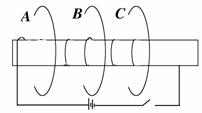 7.通电螺线管与电源相连,与螺线管同一轴线上套有二个轻质闭合铝环,B在螺线管中央,A、C位置如图所示,当S闭合时,(本题忽略三环感应电流之间的相互作用力)( )