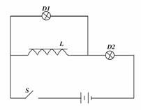 D.S合上瞬间,D1、D2同时亮,然后D1逐渐变暗到熄灭,D2亮度不变;S断开瞬时,D2立即熄灭,D1闪亮一下后逐渐熄灭。
