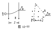 20.汤姆生曾采用电场、磁场偏转法测定电子的荷质比。方法如下:先使电子垂直通过宽l的匀强电场区域,测出偏角θ(设θ≈tgθ);再使电子以同样的速度垂直射入匀强磁场,使它经长l的圆弧后射出磁场,测