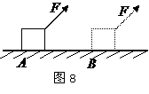 如图8,物体质量m=2kg,放在光滑水平桌面上,在恒定的牵引力F作用下由位置A运动到位置B,速度由2m/s增加到4m/s,力F与水平面成60°角,求在此过程中力F的冲量。