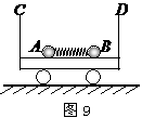 如图9所示,一辆小车静止在光滑水平面上,在C、D两端置有油灰阻挡层、整辆小车质量1kg,在车的水平底板上放有光滑小球A和B,质量分别为mA=1kg,mB=3kg,A、B小