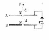 如图所示,AB为平行金属板,两板相距d,分别与电源的正负极相连,两板的中央各有一小孔M、N,闭合电键K。今有一带电质点,自A板上方相距为d的P点由静止自由下落(P、M、N在同一竖直线上),空气阻力不计,达到N点的速度恰好为零,然后沿原路返回,若保持两极间电压不变,则 ( )
