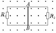 让长0.2m的导体AB在金属框上以5m/s的速度向右滑动.如果R1=2Ω,R2=1Ω,其他导线上的电阻忽略不计.试求R1、R2和AB中的电流各是多大.