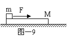 如图-9所示,长L=1m的木板,质量为M=1kg,静止在水平地面上。在木板最左端有一质量为m=2kg的小物块,在沿水平向右、F=10N的恒力作用下由静止开始运动,物块和木板、木板和水平面的动摩擦因数分别为μ1=0.2、μ2=0.1。求把小物块从木板右端拉下去的过程中,木板运动的位移为多大?(小物块可看作质点)