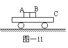 18.如图-11所示,A、B两物体及平板小车C的质量之比为mA:mB:mC=1:2:3,A、B间夹有少量炸药,如果A、B两物体原来静止在平板小车上,A、B与平板小车间的动摩擦因数相同,平板车置于光滑的水平面上。炸药爆炸后,A、B分离,到物体A和物体B分别与小车相对静止时,所用时间之比为多少?(设平板小车足够长)