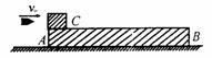 (2)若将小板AB固定在以u=1.0m/s恒定速度向右运动的小车上(小车质量远大于小木块C的质量),小木块C仍放在木板AB的A端,子弹以v0=76m/s的速度射向小木块C并留在小木块中,求小木块C运动至AB右端面的过程中小车向右运动的距离s。