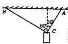 14 细绳AC和BC吊一重物,两绳与竖直方向的夹角如图示,AC能承受的最大拉力是150N,BC能承受的最大拉力是100N,为使绳子不断裂所吊重物的重力不能超过多少牛顿?