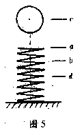 如图5所示,一轻质弹簧竖直放置,下端固定在水平面上,上端处于a位置,当一重球放在弹簧上端静止时,弹簧上端被压缩到b位置,现将重球从高于a位置的C位置沿弹簧中轴线自由下落,弹簧被重球压缩到最低位置d,以下关于重球运动过程正确的说法应是(重球可视为质点)