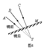 8.如图4所示,A、B、C三条光线会聚于S点.若在S点前任意位置放一平面镜M,则( )