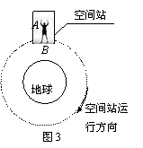 7.在圆轨道上运动行的国际空间站里, 一宇航员A静止(相对空间舱)“站”于舱内朝向地球一侧的“地面”B上,如图3所示,下列说法正确的是( )