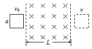 如图所示,在光滑的水平面上宽度为L的区域内,,有一竖直向下的匀强磁场。现有一个边长为a (a<L)的正方形闭合线圈以垂直于磁场边界的初速度v0向右滑动,穿过磁场后速度减为v,那么当线圈完全处于磁场中时,其速度大小