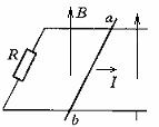 24.如图所示,水平金属轨道上横跨一金属杆ab,导轨一端接R=1.5Ω的电阻,金属杆在导轨间的那部分的电阻r=0.5Ω。导轨电阻及接触电阻不计,整个装置放在竖直向上的匀强磁场B中,金属杆与导轨间的滑动摩擦系数μ=0.3,给杆一个冲量,当该冲量作用完时,使其获得方向垂直于杆的向右的水平动量p=0.01kgm/s,此时杆的加速度a=5m/s2,求此杆a、b两端的电势差Uab。(g取10m/s2)