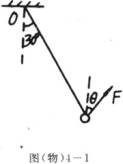 3.如图4-1用轻绳把一个小球悬挂在O点,用力F拉小球使悬线偏离竖直方向30°,小球处于平衡,力F与竖直方向成θ角,要使F取最小,θ角应是( )