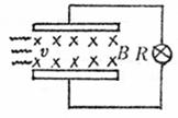 17.(10分)如图所示,为磁流体发电机示意图,其中两极板间距d=20cm,磁场的磁感应强度B=0.5T,若接入额定功率P=100W的灯泡,灯泡恰好正常发光,灯泡正常发光时的电阻R=400Ω,不计发电计内阻,求:(1)等离子体的流速多大? (2)若等离子体均为一价离子,则每秒钟有多少个离子打在下极板?