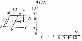 (1)若金属棒ab在F力作用下,以a=4m/s2的加速度向右从静止开始作匀加速直线运动,求第10s末拉力F的大小。