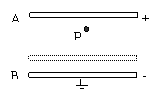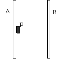 如图所示,在一块足够大的铅板A的右侧固定着一小块放射源P,P向各个方向放射β射线,速率为107m/s。在A 板右方距离为2cm处放置一与a平行的金属板B 。在B、A 间加直流电压,板间匀强电场的场强为E=3.64×104N/C,已知β粒子的质量m=9.1×10-31Kg,电量e=-1.6×10-19C 。求β粒子打在B板上的范围。