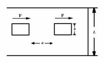 2.在宽L的平行街道上,有以速度v鱼贯行驶的汽车,已知车宽为b、车间距为a,如图所示。行人要以最小速度安全穿过车道所用时间为多少?这个最小速度是多大?此行人沿直线穿过 街道所用时间为多少?