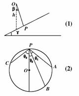 10.(1)如下图所示,一质点自倾角α的斜面上方的O点沿一光滑斜槽从静止开始下滑,要 使质点以最短时间滑到斜面上,则斜槽放置时与竖直方向的夹角β应为多大?(2)若该斜槽放 置在一竖直平面上的圆周上,圆半径为r,斜槽上端固定在圆的最高点p,另一端分别在圆周 上A、B、C点,且PA、PB、PC与竖直直径夹角分别为θ1、θ2、θ3,试证:一质点沿 PA、PB、PC从静止开始滑动到A、B、C所用时间相等(如图所示)。(3)利用(2)中的结论讨 论本题中的问题(1),并求出最短运动时间tmin