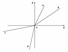 5.如图是表示在一个电场中的a、b、c、d四点分别引入检验电荷时,测得的检验电荷的电量跟它所受电场力的函数关系图像,那么下列叙述正确的是:( )