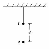 31.两个带异种电荷的小球1和2,1用绝缘杆固定在2的上方,两球相距d时恰好平衡,如图所示,若将2向上移动d/4仍要它平衡,可采用的方法是:( )