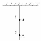 32.两个重力均为mg的带电球A和B,用绝缘细线1和2悬挂,如图,已知AB间库仑力大小恰好为mg,当两球带异种电荷时,细线1和2的张力T1和T2分别为:( )