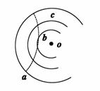 38.一带电粒子射入固定在O点的点电荷产生的电场中,粒子运动轨迹如图中虚线abc所示,图中实线是同心圆弧,表示电场的等势面,不计重力,可以判断:( )