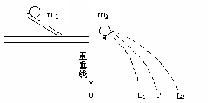 (3)小球的半径为r,不放球2,球1从槽上滚下,落到P;放球2,球1从槽滚下落到L1,球2落到L2,最后验证动量守恒要看__ __与__ __是否相等.