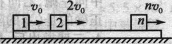 25.如图所示,一块足够长的木板,放在光滑水平面上,在木板上自左向右放有序号是1、2、3、…、n的木块,所有木块的质量均为m,与木板间的动摩擦因数都相同.开始时,木板静止不动,第l、2、3、…、n号木块的初速度分别为Vo、2Vo、3Vo、…、nVo,Vo方向向右,木板的质量与所有木块的总质量相等,最终所有木块与木板以共同速度匀速运动,试求: