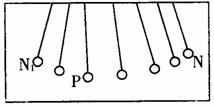 24,有一摆长为L的单摆,悬点正下方某处有一个小钉,当摆球经过平衡位置向左摆动时,摆线的上部将被挡住。现使摆球做小幅度摆动,如图所示为摆球从右边最高点N摆至左边最高点N1的闪光照片(悬点和小钉未被摄入),P为摆动中的最低点,每相邻两次闪光的时间间隔相等。则小钉距悬点的距离为
