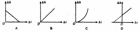 若用△h表示气压计两管水银面的高度差△t表示烧瓶内气体温度的变化,则两者的关系图线应是下图中的_______。