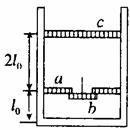 23.如下图,一个开口向上的圆筒气缸直立于地面上,距缸底l0处固定一个中心开孔的隔板a,在小孔处装有一个只能向下开启的单向阀门b.即只有当上部压强大于下部压强时,阀门开启.c为一质量与摩擦均不计的活塞.开始时隔板以下的封闭气体压强为2