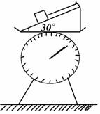 1.在下图所示的装置中,重4N的物块被平行于斜面的细线拴在斜面上端的小柱上,整个装置保持平衡,斜面倾角为30°,被固定在测力计上,如果物块与斜面间无摩擦;装置稳定后,当细线被烧断物块正下滑时,与稳定时相比,测力计的读数( )