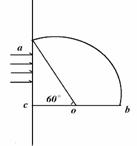 7.一块用折射率n=2的玻璃制作的透明体,其横截面如图所示,ab是一半径为R的圆弧,ac边与bc边垂直,∠aoc=60°,当一束平行黄色光垂直照射到ac边上后,ab弧的外表面只有一部分是黄亮的,而其余部分是暗的,那么黄亮部分的弧长是( )