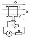 3.如图所示,矩形线圈abcd在匀强磁场中绕轴OO′匀速转动,已知B=2T,n=100匝,ab=20cm,bc=80cm,线圈自身电阻r=5Ω,R=25Ω,当线圈从图示位置转到线圈平面与磁力线夹角为60°时,线圈受到的磁场力矩为 m/s,电流表的读数为 。