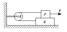 5.如图1-7-5所示,物块P与Q间的滑动摩擦力为5 N,Q与地面间的滑动摩擦力为10 N,R为定滑轮,其质量及摩擦均可忽略不计,现用一水平拉力F作用于P上并使P、Q发生运动,则F至少为