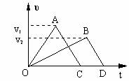 9、静止在地面上的物体在水平拉力F1作用一段时间后撤去,物体的v-t图象如图中折线OAC所示;若用水平拉力F2作用于该物体,过一段时间撤去,物体的v-t图象如图中OBD所示,在两次运动过程中,位移相等,则( )
