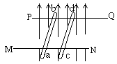 6. 如图所示,匀强磁场B=0.5T,光滑平行轨道间距L = 20cm,轻金属杆 ab电阻r=0.5W,电阻R=1.5W,导轨电阻可忽略不计,当ab杆在恒力F作用下沿导轨以v=2m/s速度匀速滑动时ab杆上产生的感应电动势e=______,通过电阻的电流大小为I=________;作用在ab杆上的磁场力方向为
