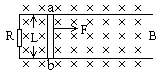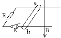2. 如图所示, 水平放置的长直平行光滑导轨电阻可忽略, 固定电阻R=0.02W,金属杆ab放在导轨上,其质量m=0.1kg,杆的电阻Rab=0.02W.平行轨道间距为20cm,整个装置处于竖直向下的匀强磁场中,B=0.2T.
