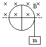 图是一个由四根相互垂直的金属辐条支撑着的金属轮,辐条长为L,轴处摩擦不计,现将轮的上半部置于磁感应强度为B的匀强磁场中,并在轮的边缘上绕一细线,线的另一端悬挂着质量为m的砝码, 若每根辐条电阻为R,其它电阻不计.