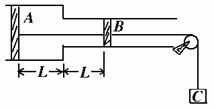 29.如图所示,水平固定的圆筒由足够长的粗筒和细筒相接而成,筒中有直径不同的两个活塞A、B,用一根细绳相连,活塞B通过水平细绳,定滑轮与一质量为2.0kg的重物C连接,A、B两活塞的横截面积分别为20cm2和10cm2。当两活塞封闭的空气柱温度为327℃时,两活塞保持静止,此时两活塞分别与大小圆筒的相接面的距离均为L。已知大气压强为1.0×105Pa,活塞与筒壁,滑轮与轮轴间的摩擦均可忽略不计,取g=10m/s2求: