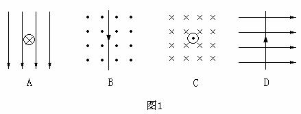 如图1所示的四种情况,通电导线均置于匀强磁场中,其中通电导线不受安培力作用的是