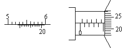 将如图所示的游标卡尺(游标尺是20等份)和螺旋测微器的读数填在相应的空格内。