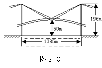 12.如图2--8所示, 1999年10月中国一座跨度超千米的特大悬索桥--江苏江阴长江大桥正