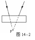 4.如图14--2所示,一束光线会聚于P点,现在会聚点P上方