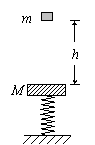 19.(14分)如图所示,质量为M=400g的铁板固定在一根轻弹簧上方,铁板的上表面保持水平。弹簧的下端固定在水平面上,系统处于静止状态。在铁板中心的正上方有一个质量为m=100g的木块,从离铁板上表面高h=80cm处自由下落。木块撞到铁板上以后不再离开,两者一起开始做简谐运动。木块撞到铁板上以后,共同下降了l1=2.0cm时刻,它们的共同速度第一次达到最大值。又继续下降了l2=8.0cm后,它们的共同速度第一次减小为零。空气阻力忽略不计,取g=10m/s2。求: