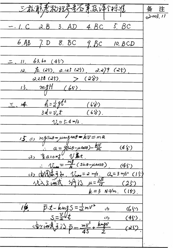 16.(12分)一架质量为m的飞机在跑道上匀加速滑行位移S后以速度v起飞,若飞机滑行过程中,所受阻力是飞机重的k倍,求:起飞过程中发动机的平均功率。