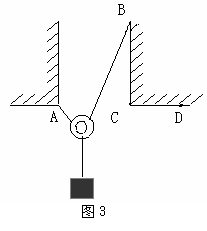 9 如图3所示,将一根不可伸长、柔软的轻绳两端分别系于两竖直壁的A、B两点上,一物体用动滑轮悬挂在绳子上,达到平衡时,两段绳子的夹角为θ1,绳子张力为T1;将绳子B端移到C点,待整个系统达到平衡时,两段绳子的夹角为θ2,绳子张力为T2;将绳子B端移到D点,待整个系统达到平衡时,两段绳子的夹角为θ3绳子张力为T3,不计所有摩擦,则: